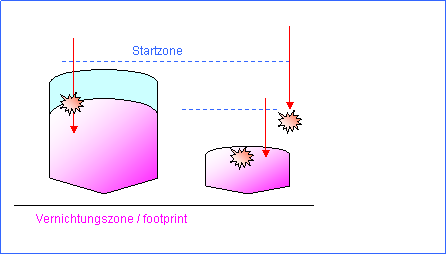 Eine Vernichtungszone gibt es nur für bestimmte definierte Bedingungen : die Zielgeschwindigkeit über und unterschreitet bestimmte Bereiche nicht, gleiches gilt für die Anflughöhe. Für den Anflug , Vorbeiflug und Abflug kann es ebenfalls unterschiedlichen Zonen der Vernichtung geben.